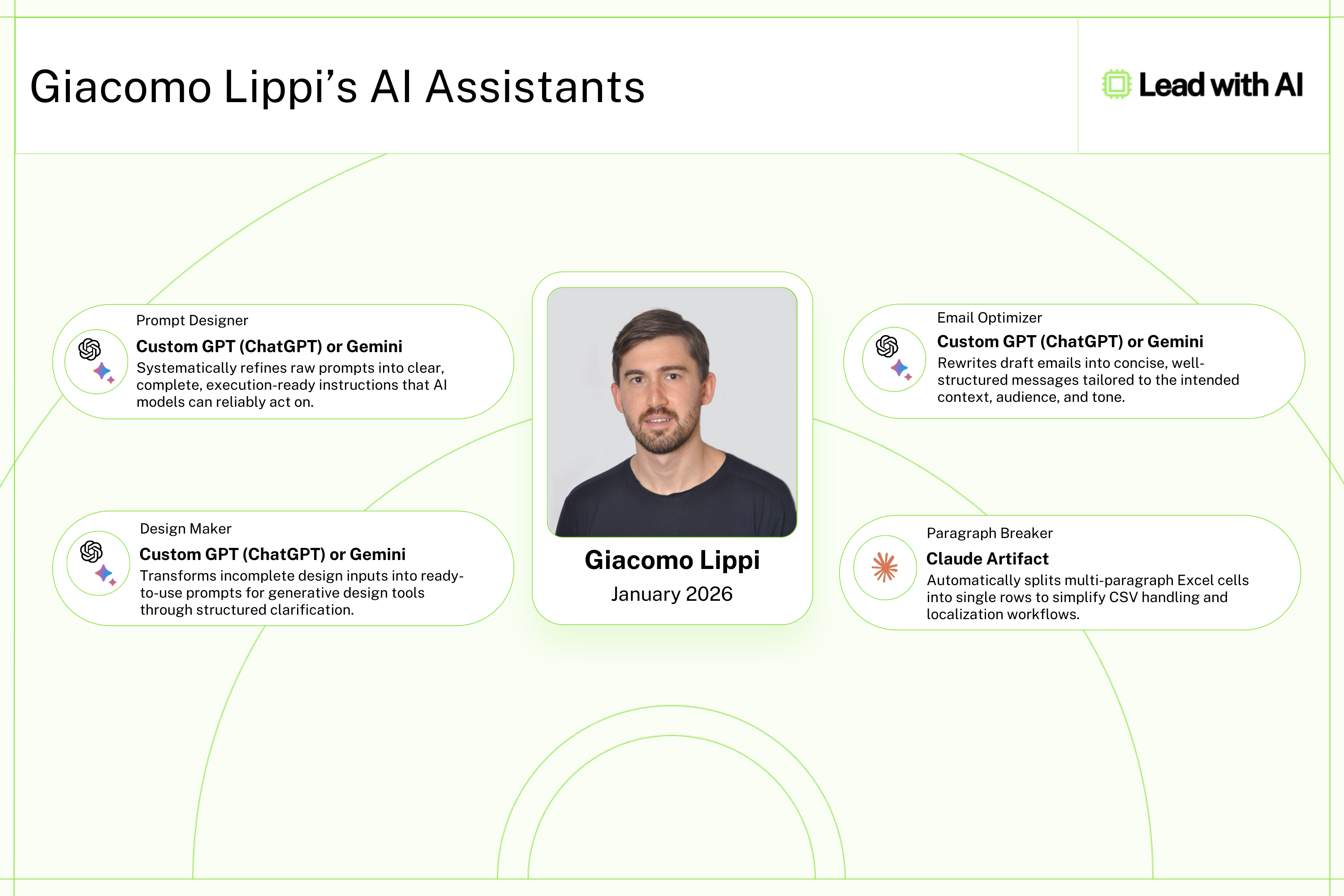 Designed, built, and deployed 5 AI assistants, now live in their daily workflow.