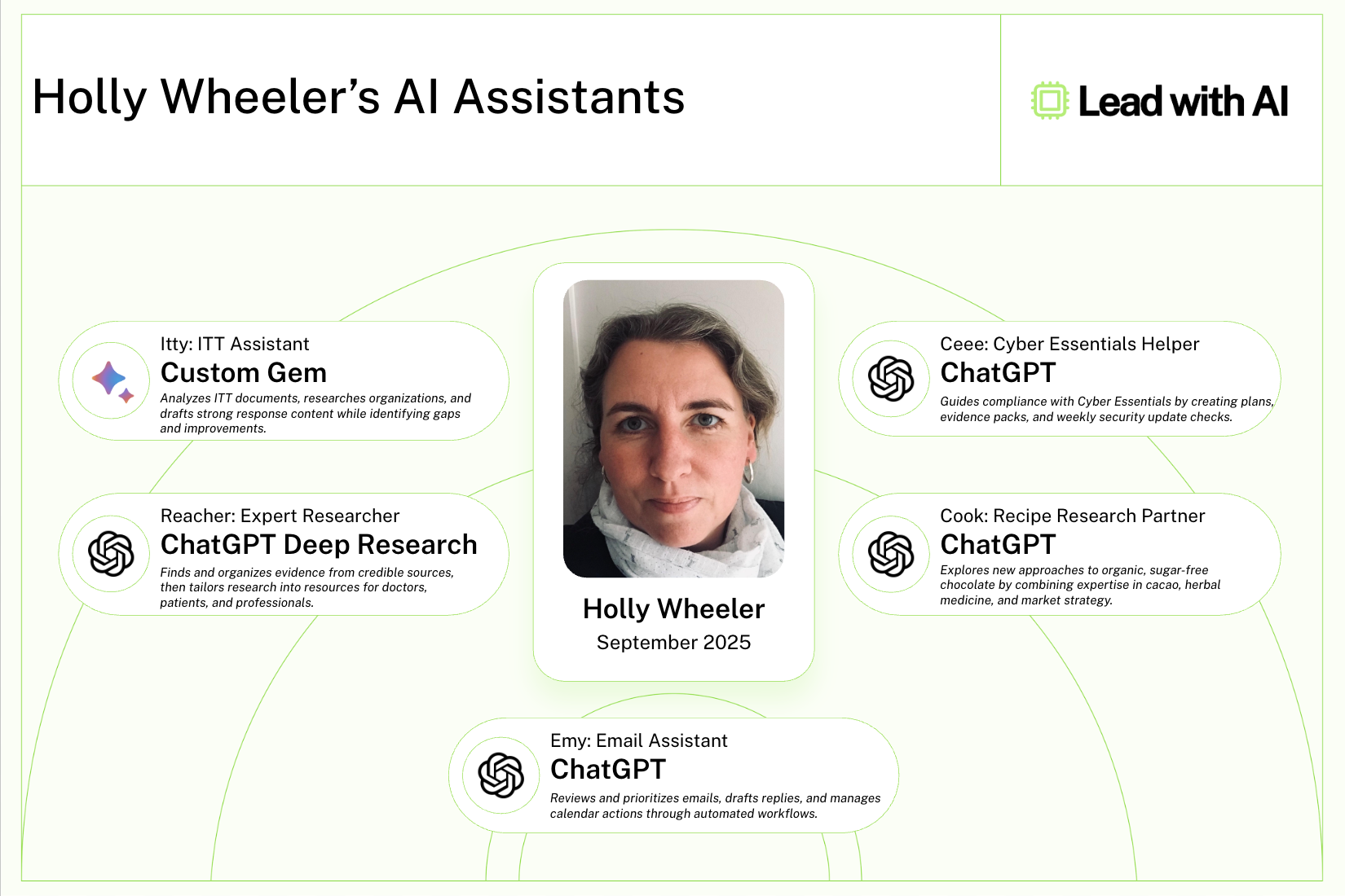 Designed, built, and deployed 5 AI assistants, now live in their daily workflow.
