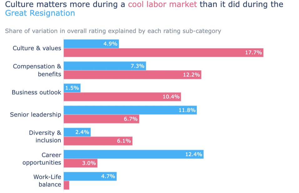 Lisa also shared data showing that culture matters more in a cooler labor market. When employees have fewer options, culture becomes the differentiator.