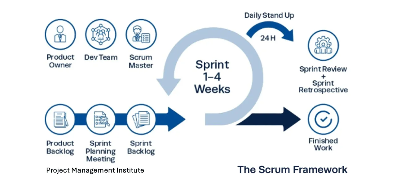 Taking rugby football's 'scrum' play in a tech team environment, Agile emerged as a collection of frameworks (incl. the Scrum Framework) for software development, focused on flexibility and collaborative iterative development.