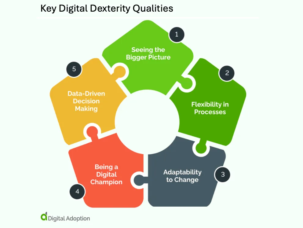 - Define Dexterity Goals - Set clear adoption and fluency targets. Digital dexterity is measurable—through usage of digital tools, productivity, and employee confidence surveys.